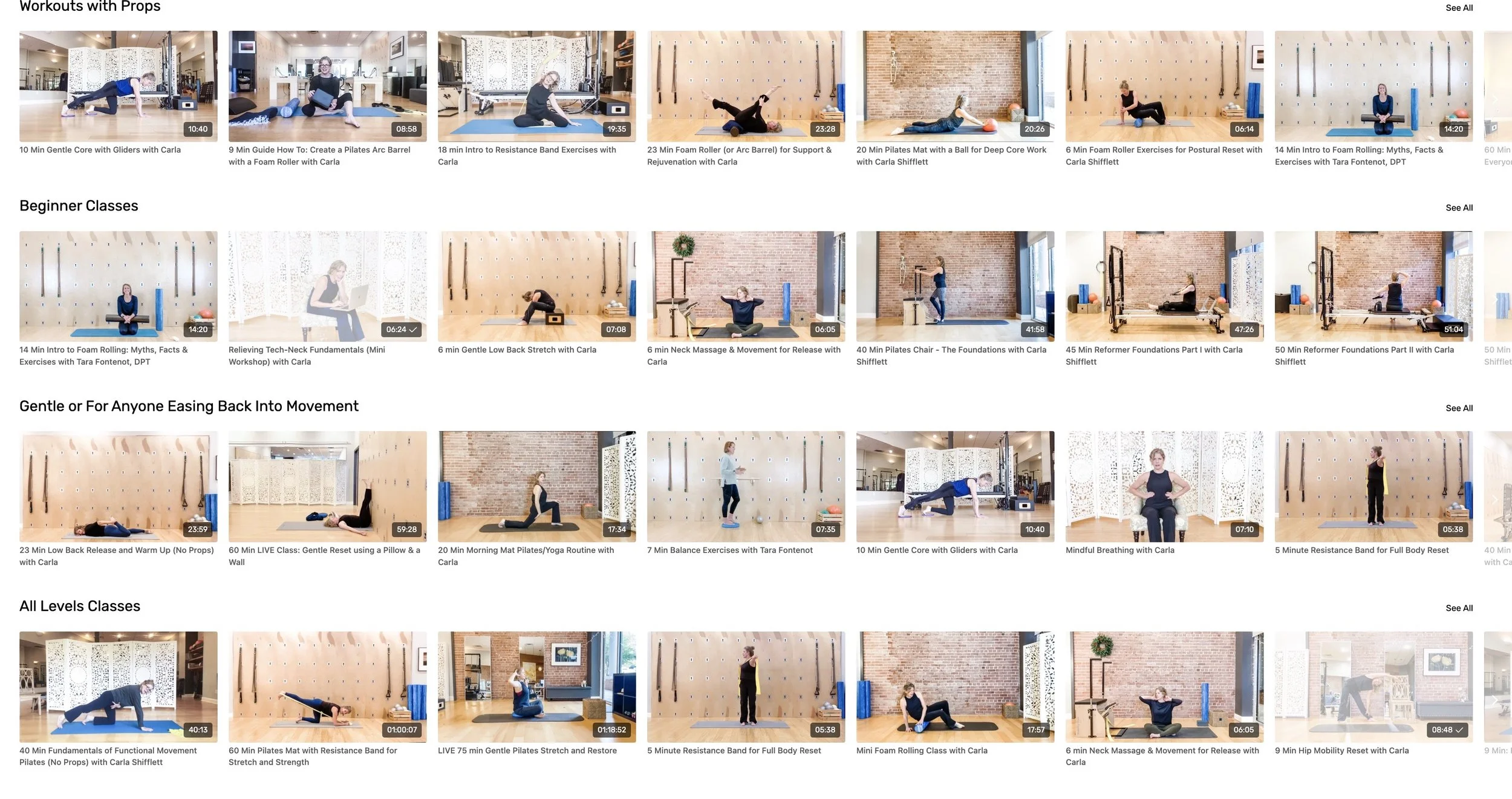 Stay connected to Pilates wherever you are with our online subscription. Access a library of 75+ videos ranging from 5 to 90 minutes, including gentle therapeutic sessions, energizing mat routines, and advanced strength-based Pilates. Most classes require no equipment, with options to add small props or Pilates apparatus if you have them at home.